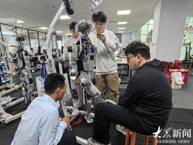 4月1日下午3点半,济南齐鲁软件园内,来自山东优宝特智能机器人有限公司(以下称“优宝特”)研制的人形机器人“行者泰山”,正在进行“特训”。