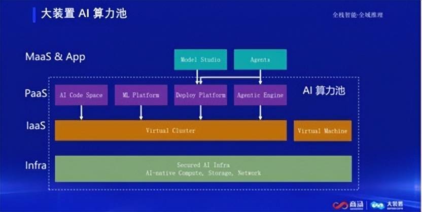 据了解,AI算力池面向AI原生时代全新算力服务需求,采用"三明治"水平分层架构,从底层高度优化的计算网络存储基础设施,到中间层全新的虚拟集群技术,再到上层涵盖开发机、训练平台、部署平台及Agentic Engine的完整PaaS产品体系,全面杜绝不同产品之间的资源孤岛问题。