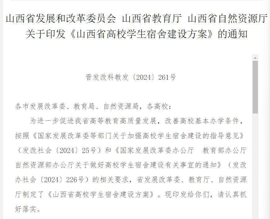 《山西省高校学生宿舍建设方案》