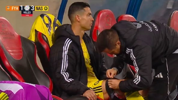 不仅如此,C罗还在第81分钟因为腿筋拉伤,黑着脸被换下场。下场后,C罗更是不得不在替补席用冰袋冷敷大腿,显然连续作战让身体素质惊人的C罗也扛不住了。